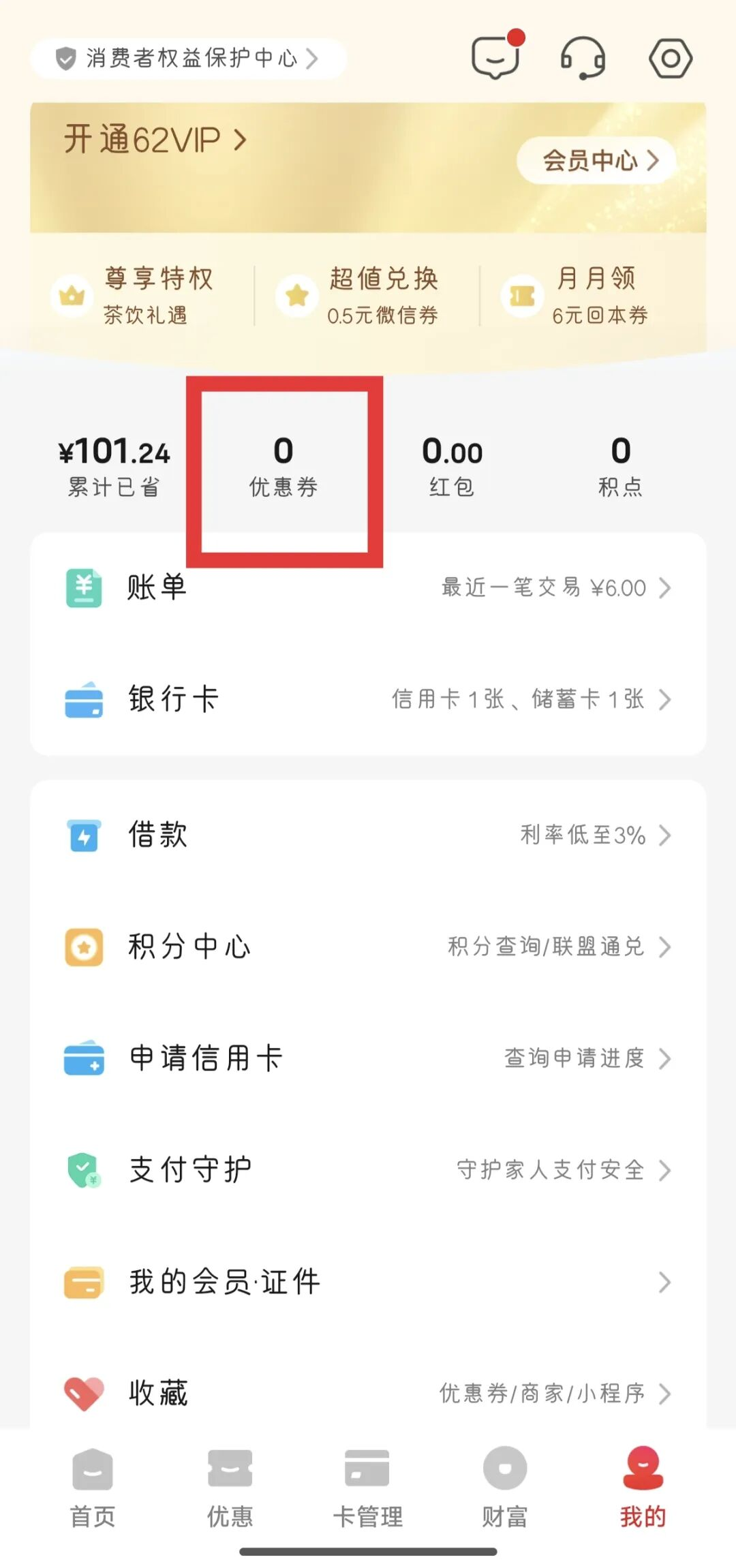 2、打开“云闪付”,在“我的”——“优惠券”界面确认已成功领取“吉莞双城好物嘉年华”消费券。