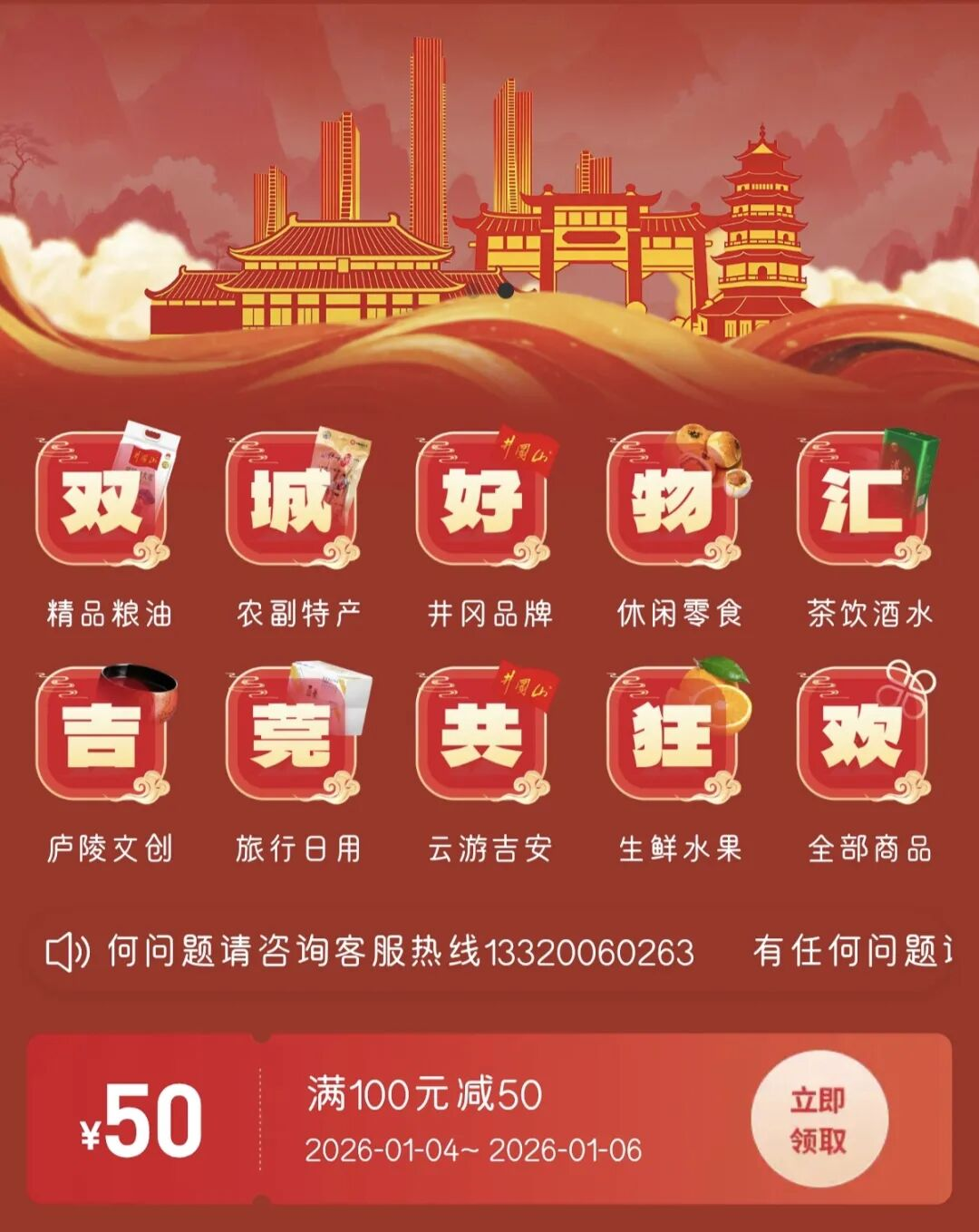 进入“云享庐陵”商城即可领取满减消费券。单轮次消费券限领取1张,名额有限先到先得。