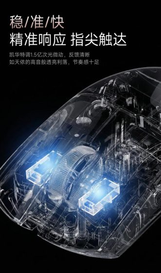 微动与滚轮:S9选用了凯华特调的光微动,寿命高达1.5亿次。手感清脆利落,回弹迅速。滚轮则采用了TTC防尘金轮,刻度感清晰,且有效防止了灰尘进入导致的连击问题。